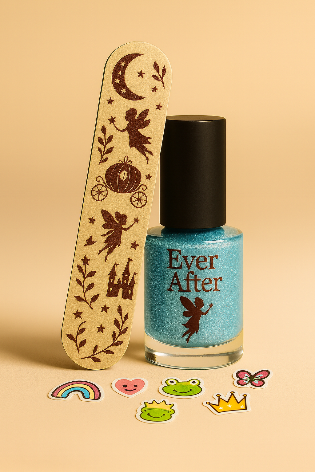 Mini, the magic continues with a gentle file and shape, followed by their chosen polish or a handful of playful stickers (up to 4) to make tiny nails twinkle.
